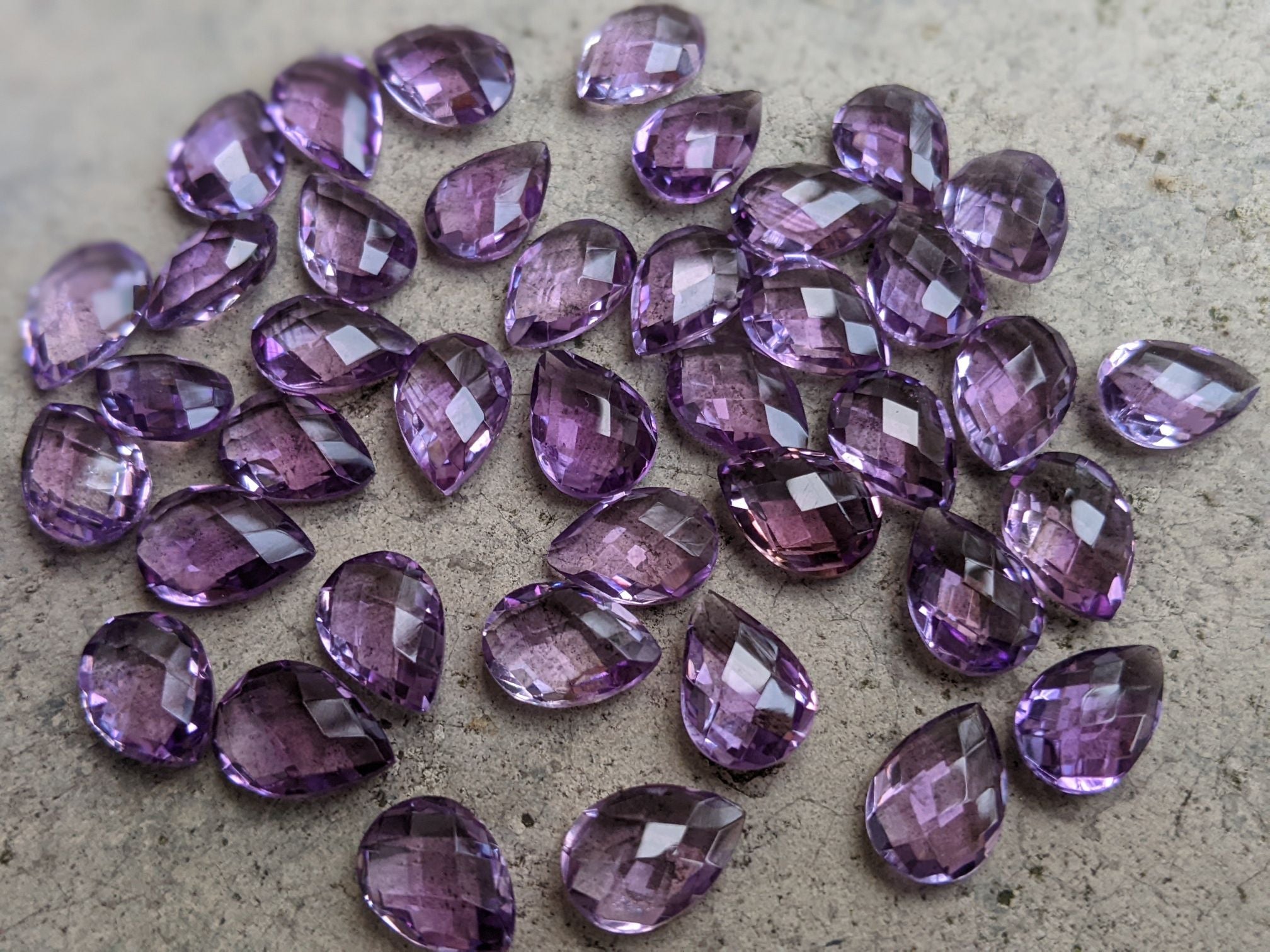 Amethyst (Brazilian) teardrop rose cuts 7x10mm 4@$3 (12)