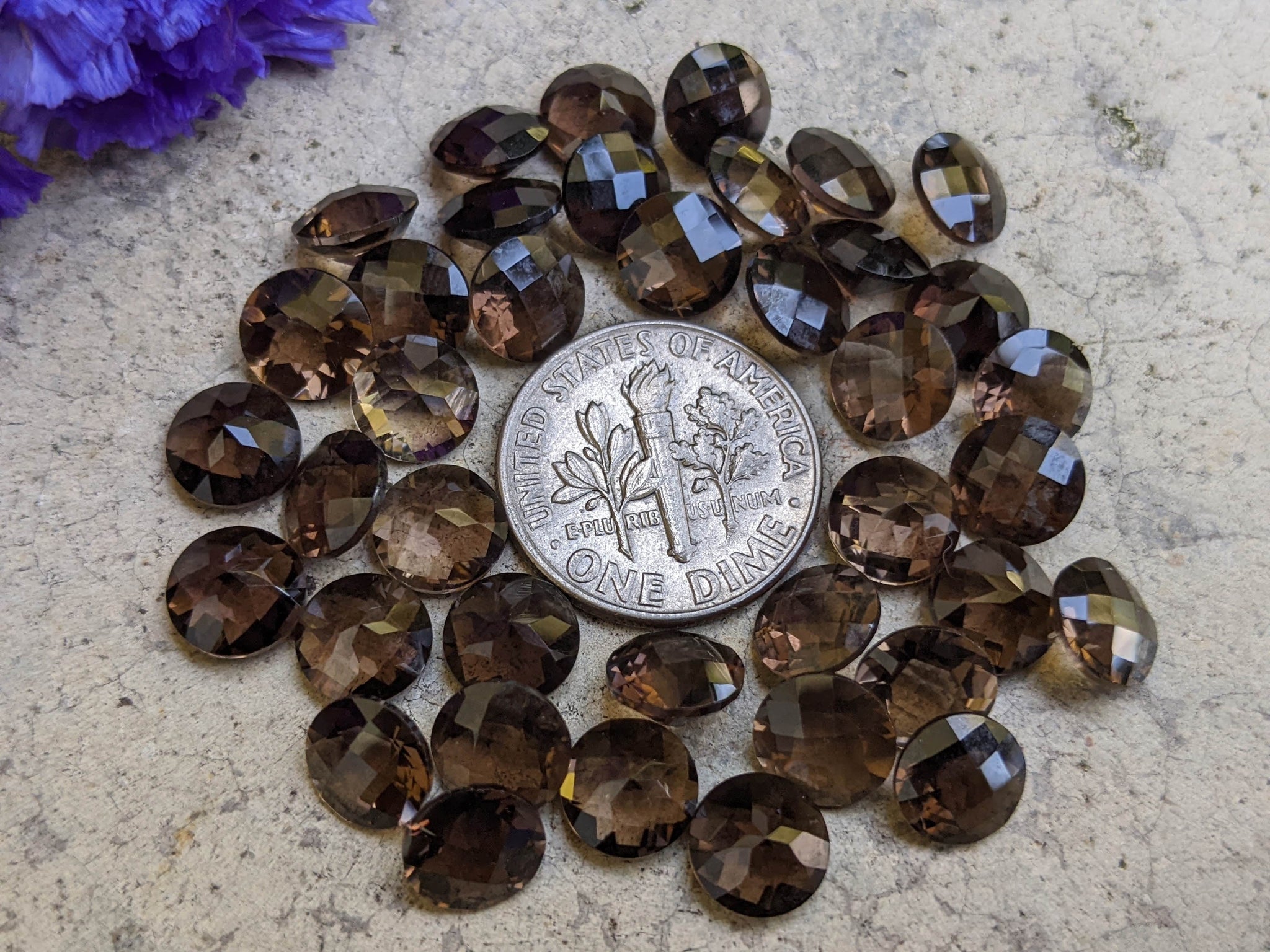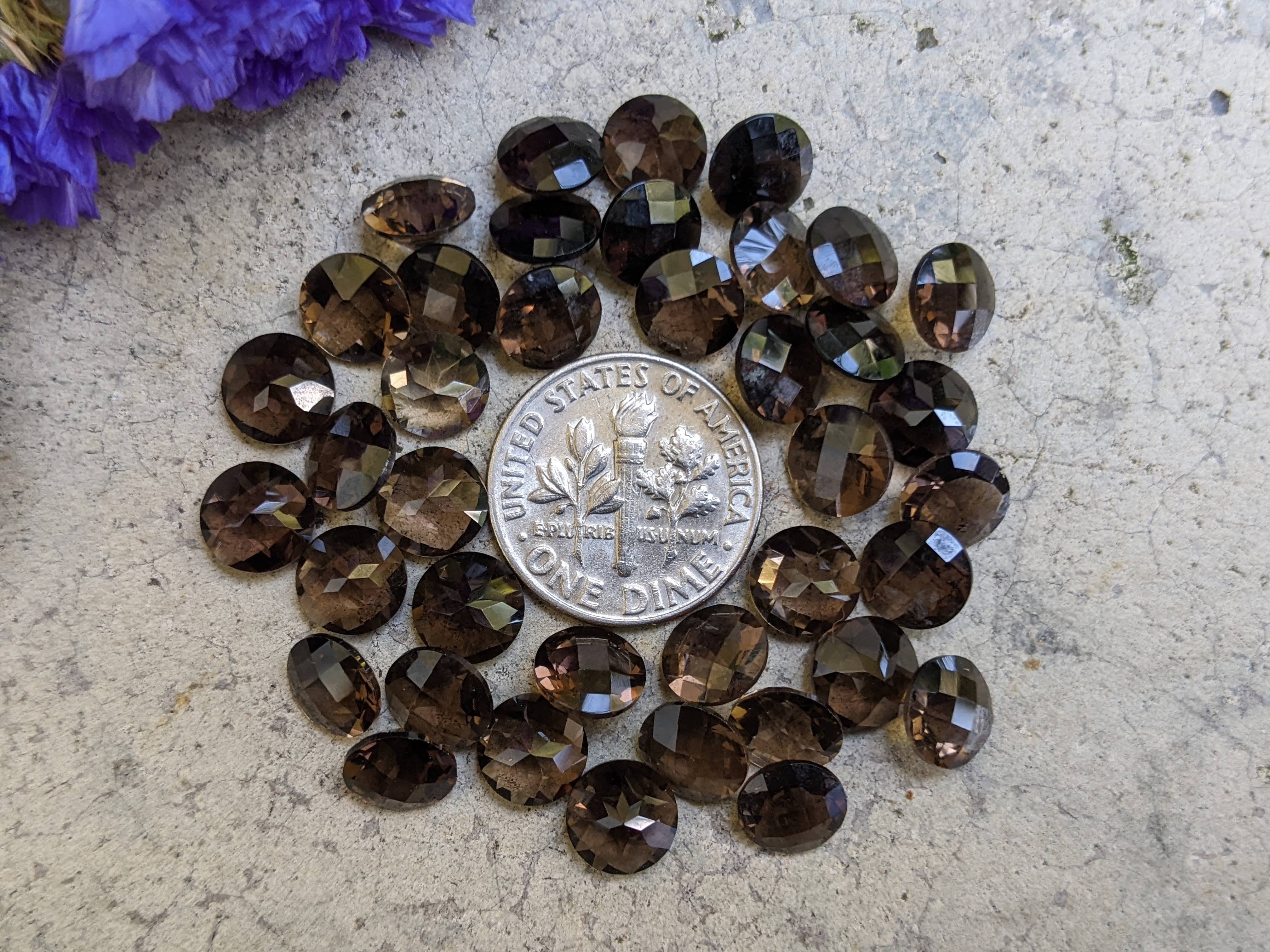 Cut from natural smoky quartz, these stunning facets have a checkerboard/rose cut crown. They are approximately 8mm in size and are sold per randomly selected piece.